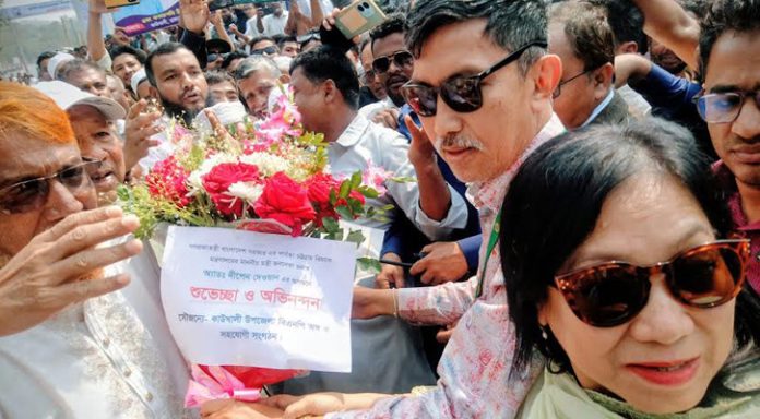 এতে বলা হয়, ঢাকা থেকে রাঙামাটি সার্কিট হাউসে এসে যখন মন্ত্রী পৌঁছান এ সময় জেলা প্রশাসন, বিভিন্ন সরকারি দপ্তরের কর্মকর্তা এবং বিএনপি ও অঙ্গ-সংগঠনের নেতাকর্মীসহ সর্বস্তরের সাধারণ মানুষ তাকে ফুলেল শুভেচ্ছায় বরণ করে নেন।