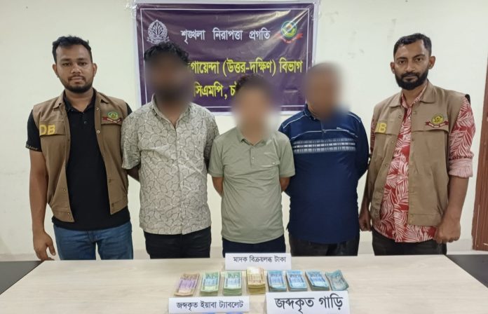 চট্টগ্রাম মহানগরে অভিযান চালিয়ে ১ হাজার পিস ইয়াবা ট্যাবলেট, মাদক বিক্রির নগদ ২ লাখ টাকা এবং একটি কালো রঙের টয়োটা মাইক্রোবাসসহ তিন মাদক কারবারিকে গ্রেফতার করেছে ডিবি (উত্তর) পুলিশ।